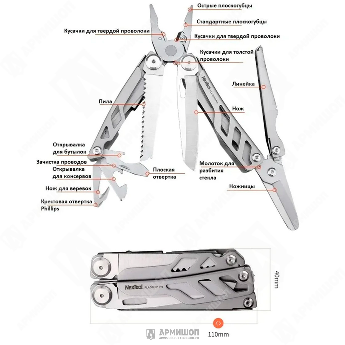 | ТИП МУЛЬТИТУЛА: | Плоскогубцы-мультитул |